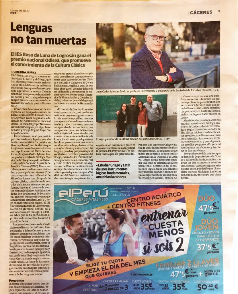 Como en otras ocasiones, os adjunto noticia en Diario HOY sobre Odisea 2017 y sobre actividades de la SEEC en Extremadura, como las Olimpiadas de Cultura Clásica del 10 de marzo.