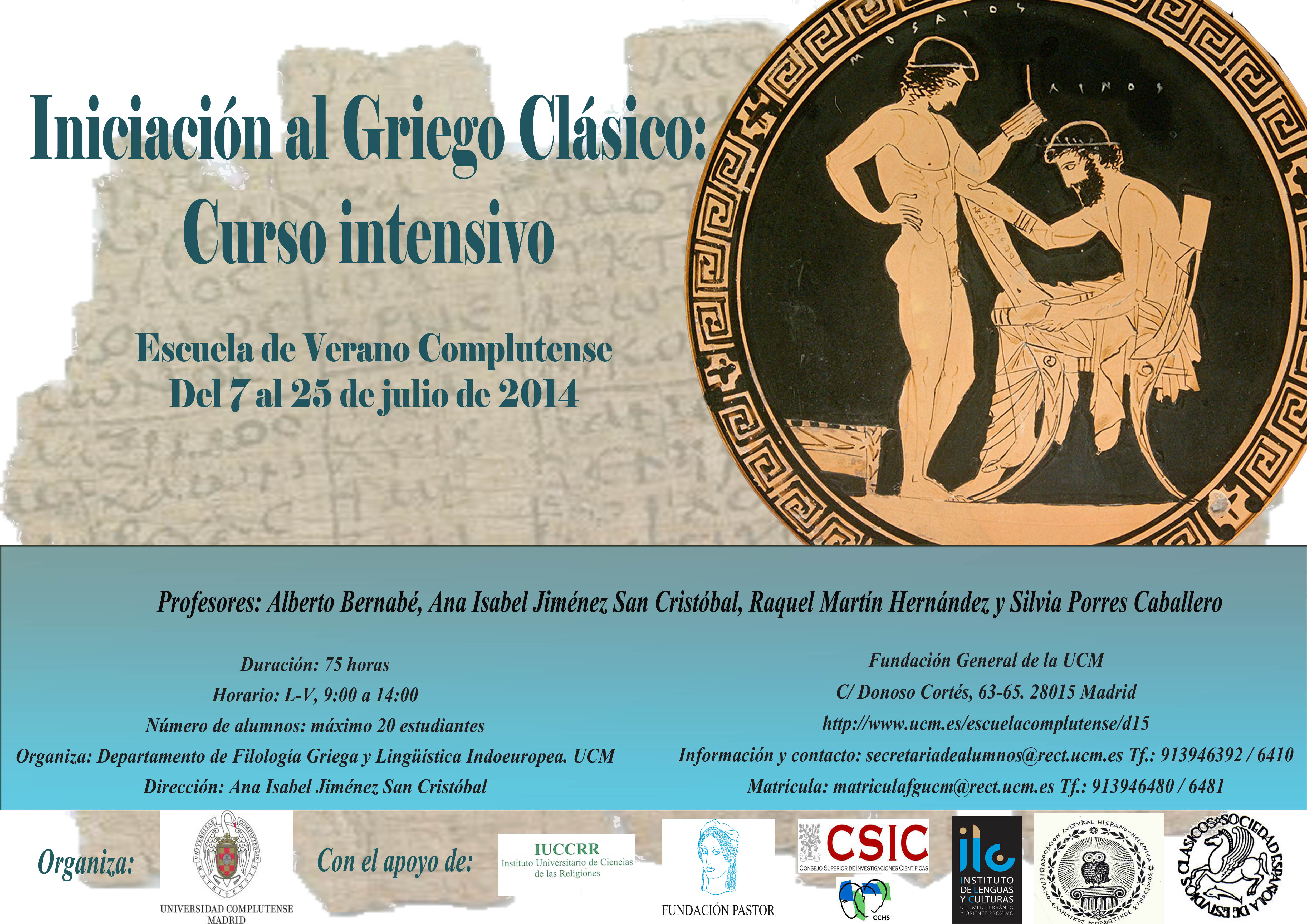Nos es grato comunicarles la celebración del Curso Iniciación al Griego Clásico, integrado dentro de la ESCUELA COMPLUTENSE DE VERANO 2014, que se impartirá del 7 al 25 de julio en la Universidad Complutense de Madrid.