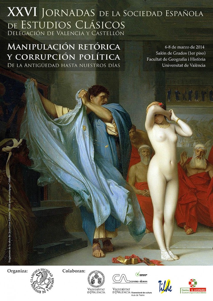 Los días 6, 7 y 8 de marzo de 2014 se celebrarán en la Facultat de Filologia, Traducció i Comunicació de la Univ. de València las XXVI Jornadas de la Sección de Valencia y Castellón de la SEEC, que tienen por título «Manipulación Retórica y Corrupción Política. De la Antigüedad hasta nuestros días».